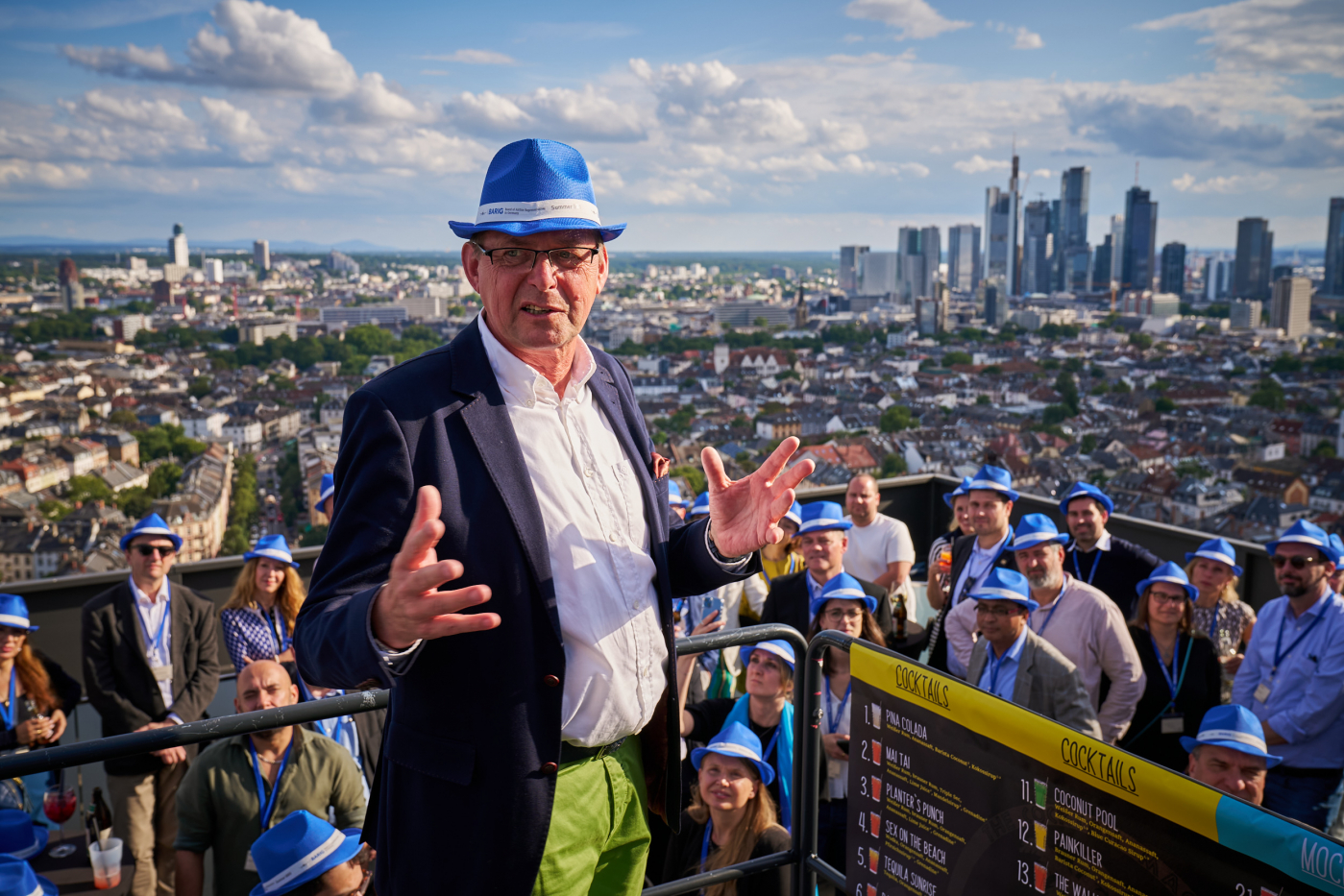 Way up at the open-air terrace on the 27th floor, we welcomed around 100 representatives of our airline and partner community for an after-work-drink and an exquisite culinary barbecue catering. We enjoyed many interesting conversations and networking opportunities – with the best sunset view above the city of Frankfurt!